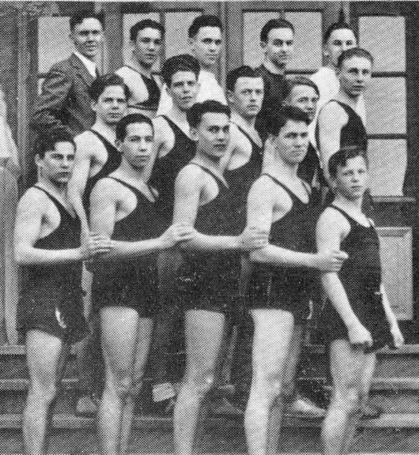 Left to Right First Row: Johnnie Henderson, Jack McShane, Kenny Lowes, Courtney Britton, Gordon Dowding. Second Row: Harry Smith, Herbert Kelly, Morris Roy, Joe Carlin, Roger Roberts. Third Row: Alec. Clarke, Ben Burgoyne, Paul Derrick , Lester Oakley. Fourth Row: Mr. Morse, Mr. Kay, Mr. Gurney.