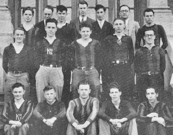 Left to right Row One: Lyle Kennedy, Gordon Dowding, Rusell Wasylkow, Fred McIntyre, Jack McShane. Row Two: Alex Clarke, Courtney Britton, Kenny Lowes, Harry Smith, Joe Carlin. Row Three: Mr. Jackson, Norman McEwen, Herb. Kelly, Albert Roos, Frank Walsby.
