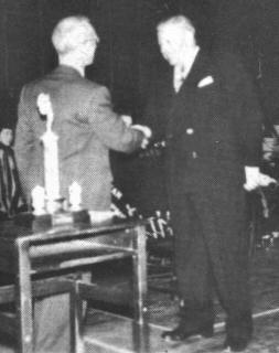 Following the final game Red Devil co-captains, Gordie Beecroft and Bob Holt were presented with the Pacific Mills trophy, emblematic of the most sportsmanlike team at the tournament. This cup is presented annually to the team whose conduct on and off the floor is considered to be the most gentlemanly of the teams competing in the tournament.