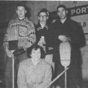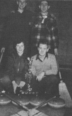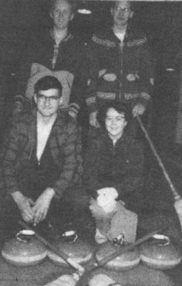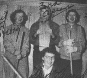 Mr. and Mrs. J. A. Beaton very kindly donated to the club "The Shirley Beaton Memorial Trophy" to be used in the high school bonspiel. The bonspiel was held with Jack Dunlop's rink winning the "A" competition and the trophy. Alan Louie's rink won the "B" competition. The members of this year's executive were: President, Andy Kassiones, Secretary, Shirley Page and Treasurer, Jack Dunlop. Mr. Cunningham was staff sponsor.