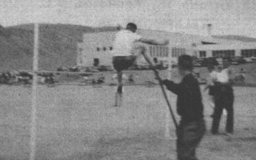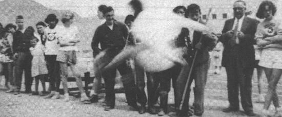 This year the cheerleader club started with a bang. Quite a large number of girls turned out for practice but only five were picked as cheerleaders. These girls, Truth Savage, Jenny Yuskiw, Bernice Armstrong, Dorothy Boyd and Penny Duck were ably assisted by Ricky Webber and Eddy Marini. However for one reason or another the boys dropped out leaving the girls alone. During the first part of the year Eddy Marini and Beverly Barwell were elected president and secretary-treasurer respectively. When Eddy left school, another election was held placing Bev. Barwell president and Eleanor Higham secretary. The girls cheered for many of the games, practising hard before each game to perfect the cheers. However they only made one trip to Salmon Arm. The Pep Club which started out with lots of assistance soon dwindled as the kids did not sit together and yell as one voice. Next year we hope to see better co-operation between the Pep Club and Cheerleaders.