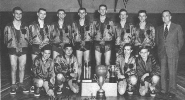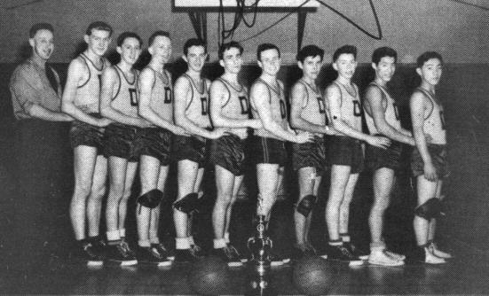 At 4 p.m. on Monday, March 16, Chris Wright's K.H.S. Red Devils left for the Vancouver High School Tournament. They arrived at the University of British Columbia at noon on Tuesday and had a practice in the Memorial Gymnasium at 4 o'clock. The following Wednesday the Red Devils downed the highly favored Vancouver College team 47-40 in one of the biggest upsets of the tournament.