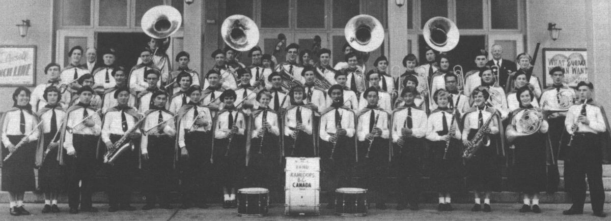 On July 5, 1954, the fifty-two members of the Kamloops Band to Holland left the C.N.R. station to compete in the World Musical Festival, in Kerkrade, Holland. After the train trip across Canada we arrived in Quebec and boarded the Johan van Oldenbarnevelt, which was to be our home for the next eight days. After four days of our own cooking on the train, this seemed like heaven, although there were some pretty green faces for the first few days. We docked at Southhampton and boarded a special train which took us to London. Most of our time here was spent in sightseeing such famous places as the Tower of London, London Bridge, Westminster Abbey, Piccadilly Circus and many more. During our stay here we played a short concert for the Lord Mayor and later took a trip to the beautiful seaside resort of Torquay, where we performed again. During our stay in Scotland, we visited Mr. McMurdo's home town, Catrine, and for most of us, Mr. McMurdo included this was the highlight of the whole trip. As we played the last number of our concert “Loch Lomond" every one in the band and in the audience, too, wished the concert could go on for another two hours. Many tears were shed as we left Catrine, with the strains of "Will Ye No Come Back Again?" gradually fading away in the distance. We concluded our stay in Glasgow, and went back to London for a few days. During this time everybody bought souvenirs, clothes, and almost went broke We sailed from Harwick, across the English Channel to the Hook of Holland where after a good deal of trouble with the customs officials, we boarded our train and finally arrived at our destination – Kerkrade. Here we were met by a welcome sight, the R.C.A.F., whose guests we were to be for the next week.