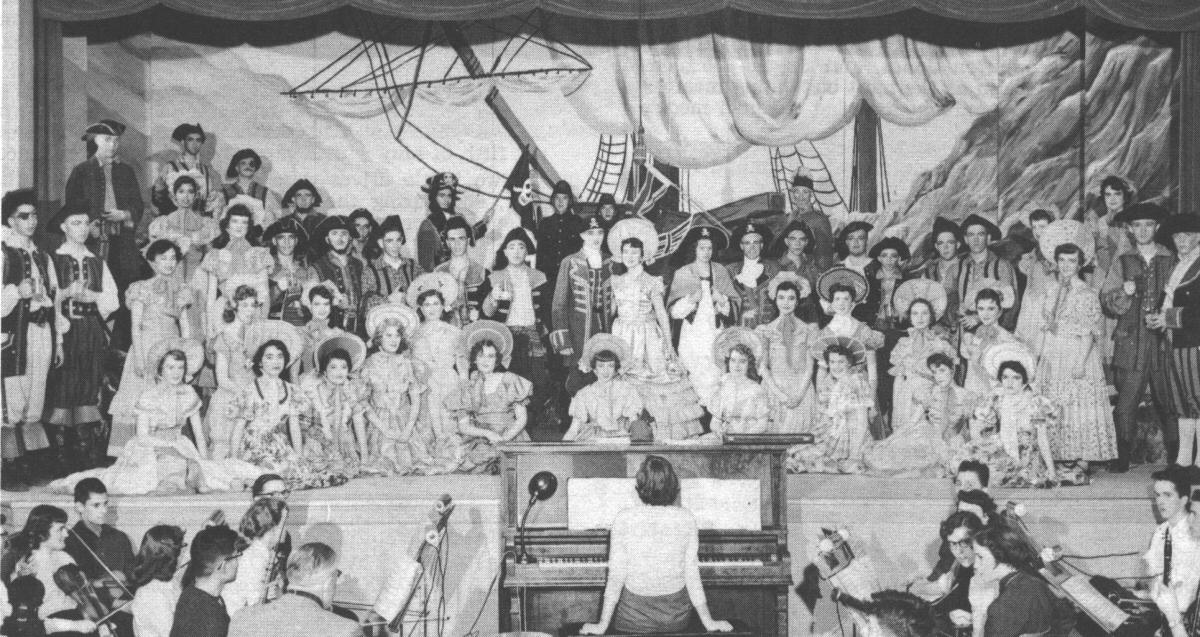 Much work went into this production. Both Mrs. Owens and Mr. McMurdo spent hours in preparation. Vocal scores, librettos, light, costumes and scenery had to be purchased or made.
