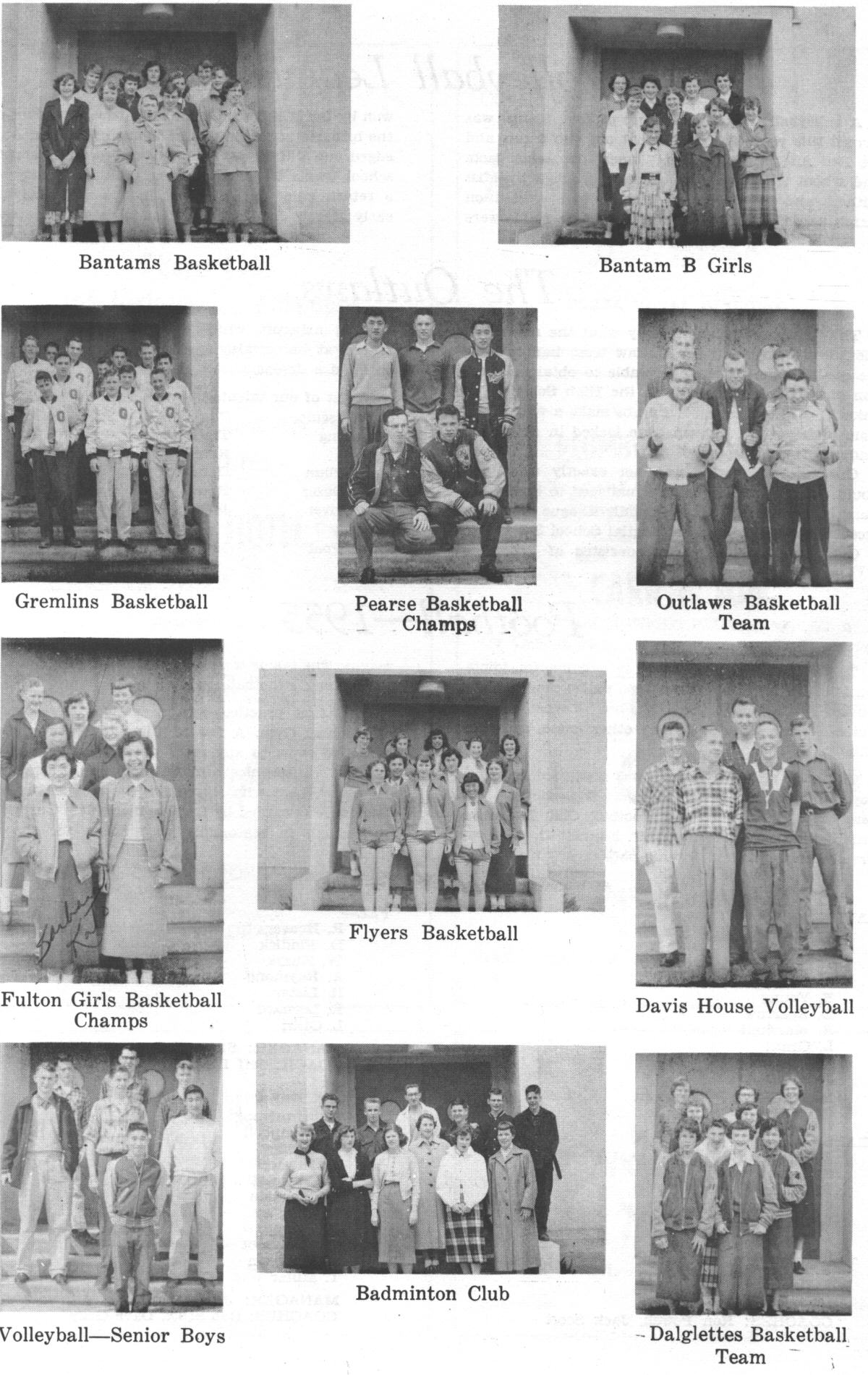 Basketball playoffs were won by the Pearse Boys. Volleyball was just being organized. The Davis House Girls won the basketball playoff in one of the best House games of the eyar.