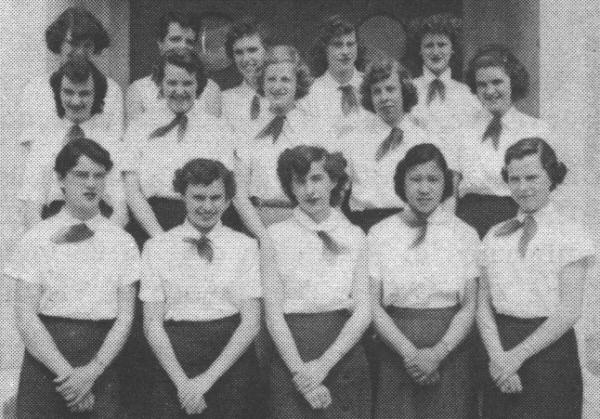 The Senior Choir, under the direction of Mrs. Marion Owens, had a very successful 1954-55 season. Our first performance was singing for the Parent-Teacher Association where we sang "Tom's Gone to Hilo," "On Wings of Song" and the amusing "Leather Winged Bat." At Christmas we entertained the Old Age Pensioners with a group of “Carols From Other Lands." The highlight of the year came at the Yale-Cariboo Musical Festival when we won The Canadian Daughters League Trophy. Recently we sang for the Ladies' Auxiliary to the Royal Inland Hospital at their fashion show. Our only hope is that our audiences enjoyed our programs as much as we enjoyed singing them.