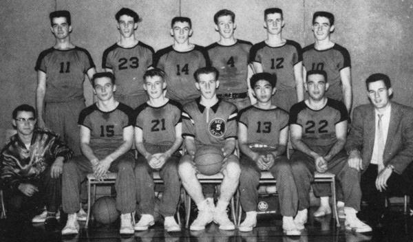 Team members were: Dennis Smith, Bill Martin, Glen McKnight, Brian Evans, Hiroshi Kobayashi, Neil Stanley, Bill Sutherland, Doug Howard, Dennis Hunter, Gary McKenzie, George Makortoff, Jim Newman, Jack Hooper, Manager; Mr. Currie, Coach.