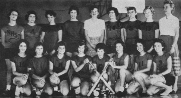 First Row, Left to Right: Marilyn Kriese, Susan Symonos, Naomi Kenward, Karen Beblow, Gayle Miller, Jo-Ann Critchfield, Loretta Flatt, Shiela Beech. Back Row: Susan Hamilton, Sharon Carson, Bonnie Anderson, Doreen Moyer, Jocelyn Rogers, Susan Buckham, Darlene Hoshowski, Eileen Sowerby, Mrs. Van Ryswick, Coach.
