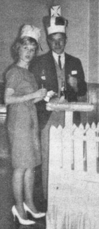 The high-light of the spring social activity was the King and Queen Dance held in May and sponsored by Fulton House. This was the best attended House dance of the year. Of the eighteen contenders for the positions of King and Queen, Judy Summers and Bob Smillie were successful.