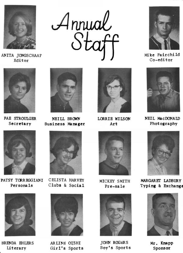 FIRST ROW: Nita Jongschaap, Arline Oishi, Randy Murphy, (Editor) Brenda Ehlers, Liz Ottens SECOND ROW: John Rogers, Mickey Smith, Margaret Ladbury, Margaret McLean. Mary Thomson. Lorrie Wilson, Lorraine Shaw, David Hemmingway, and David Woodbury.