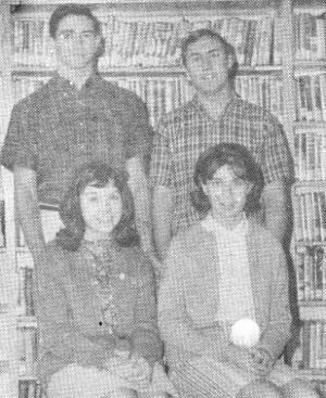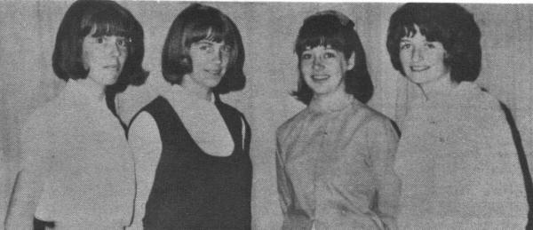 Four who took the First Aid Test Top: Pat Schoening, Mary Serviss Bottom: Linda McKim. Missing: Judy Edworthy