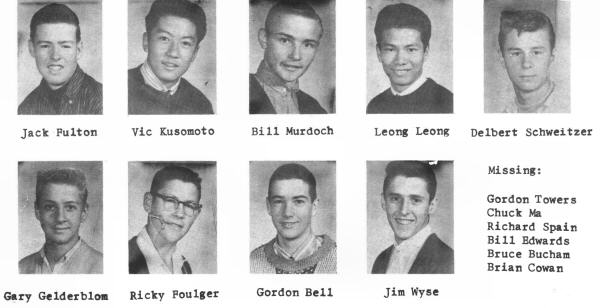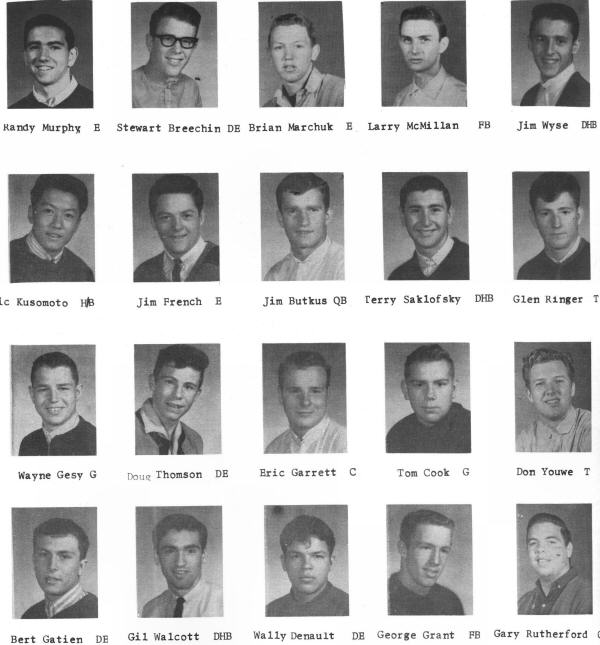 This years football team was greatly improved over the previous year's squad. Under the able coaching of Head Coach Grant McLeod, the defensive coach Rev. Jackson Strapp, and the offensive coach Jim Knowler the "Big Red Machine" achieved a league record of 4-4. A major factor in these wins was George Grant, the Devil's powerful fullback who received the Most Valuable Player Award for the league. George also attended the B. C. lions training camp in the summer. Also attending the camp was "Big Ron" McGuire. The Devil's played an exhibition game to Oak Bay of Victoria in the historical "Snow Bowl". This turned out to be aptly named as the concrete-like ground and icy weather conditions prevented the playing of good football. The game was very close and the Devils lost by only one touchdown. It is hoped that an avenging match will be arranged next year.