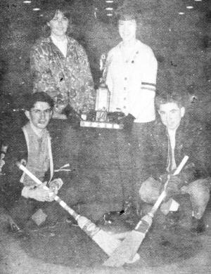 The Curling Club got off to a "rocking" start under the co-sponsorship of Mr. Barker and Mr. Hay. The members practised on Tuesdays from 4-6 at the local rink. They participated in two bonspiels this year and won one. The Curling Club has indicated that they would like more members next year.