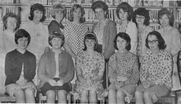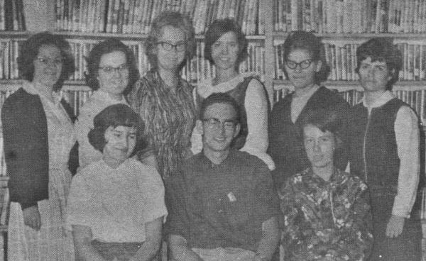 FIRST ROW: Lynn Mugford, John Stockwell, Marjory Humphery SECOND ROW: Claudine Kirby, Prances Davis. Sharon Woodhouse, Marilyn Piller, Alice Kennedy, and Linda Ottley.