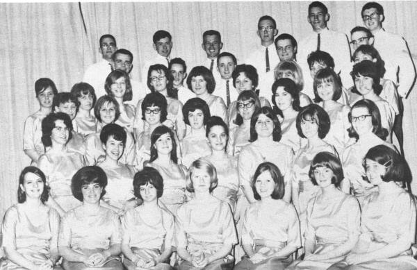 All rows left to right: FIRST ROW: Kathy Baines, Judy Hughes, Corinne Black, Lorraine Shaw, Gail Cruickshank, Donna Miller, Marilyn Osborne. SECOND ROW: Judy Maki, Brenda Ehlers, Joanne Odynsky, Linda McKim, Laurel Osborne, Sandra Connley, Kathie Middleton. THIRD ROW: Terry Clarkson, Terry MacDonald, Gwen Angell, Shirley Lampman, Ann Coates, Maureen Tilton, Diana Hay, Sherry Farnsworth. FOURTH ROW: Shannon Pelky, Donna Stratton, Anne Grube, Anne Balf, Susan DeBeck, Teresa Bohn, Fran Bently, Trudy Nicol, Sheila Jones. FIFTH ROW: John Rogers, Sandy Gabrey, Dave Stewart, Rod Young, Russell Noakes SIXTH ROW: Neil Burton, John Kingsbury, Ray Nicol, John Stockwell, John McIver, Ricky Campbell.