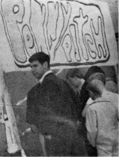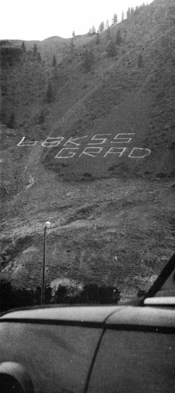 This year the graduating class refrained from extensive paint jobs about the city but left a rather more forceful mark on Mt. Paul. The white limed letters "68 KSS GRAD" are about forty feet high and was no fly-by-night operation. Three students started the operation three weeks prior and planned it down to the last inch.