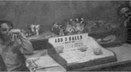 First they made scale drawings and them mapped out the letters. Finally on the night of Saturday June 8th about twenty boys packed 50 pound bags of lime up the mountain. At 10:30 the boys returned to town with mission accomplished. |