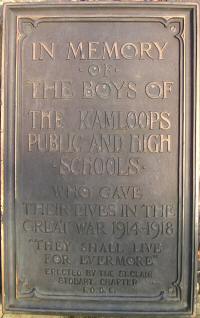 It was the summer of 1914; a group of men stood around the Kamloops telegraph office. Their faces expressed curiosity and anxiety, as they waited breathlessly for the news. Already the War Lord's hosts had burst suddenly upon the world and we, like some poor sailor tossed on an angry sea, seemed blinded by the dark uncertainty of the future. Britain, caught unprepared for the struggle, was swept by ties of honour into the fray. We heard her clarion call and our hearts were drawn by the strongest ties in the world to our mother in distress. Then came the question: "Must our young men be sacrificed?" We knew the answer, and the anguished hearts of mothers were even proud to think that their straight young sons could help to preserve the honour of the world